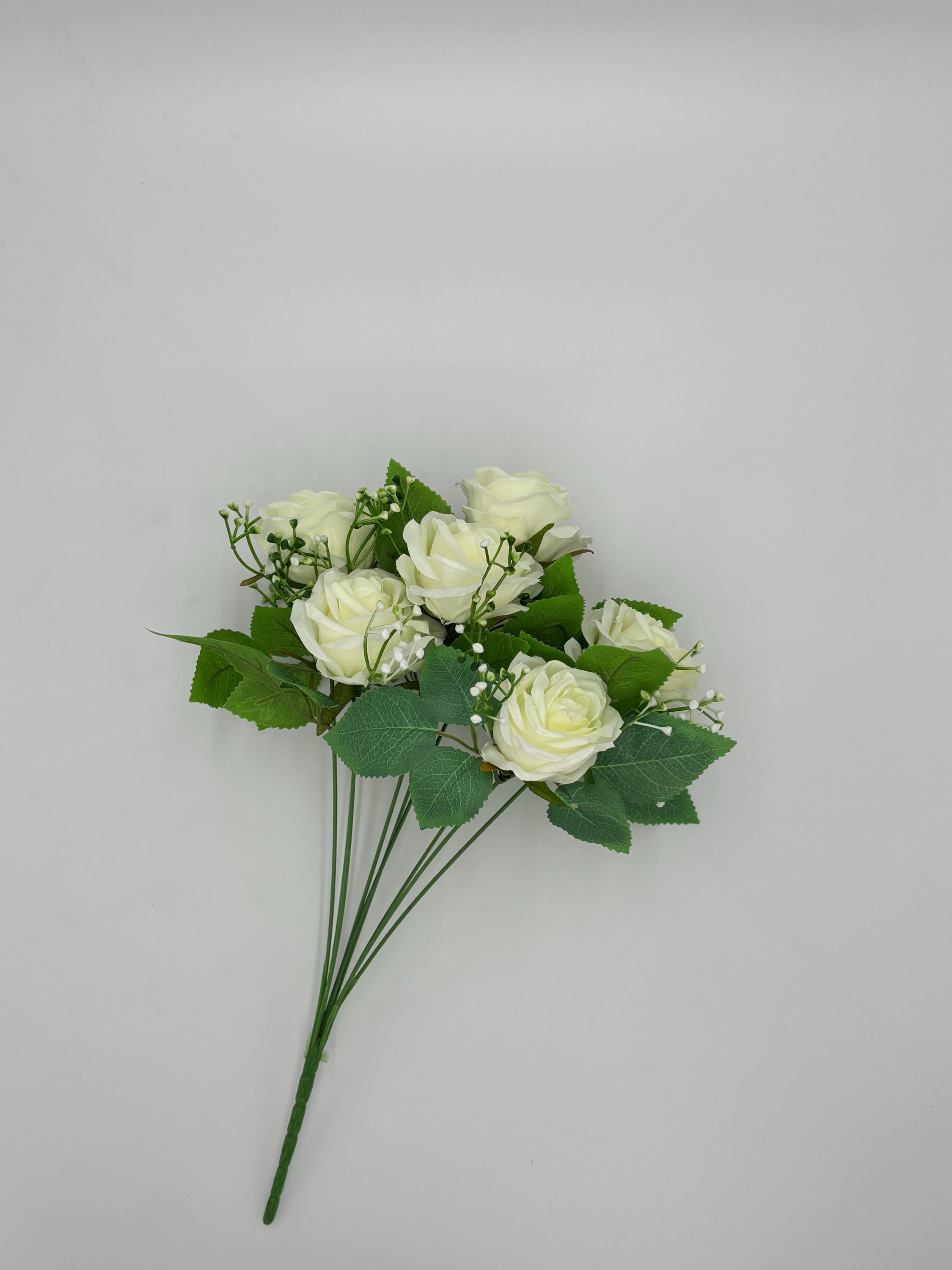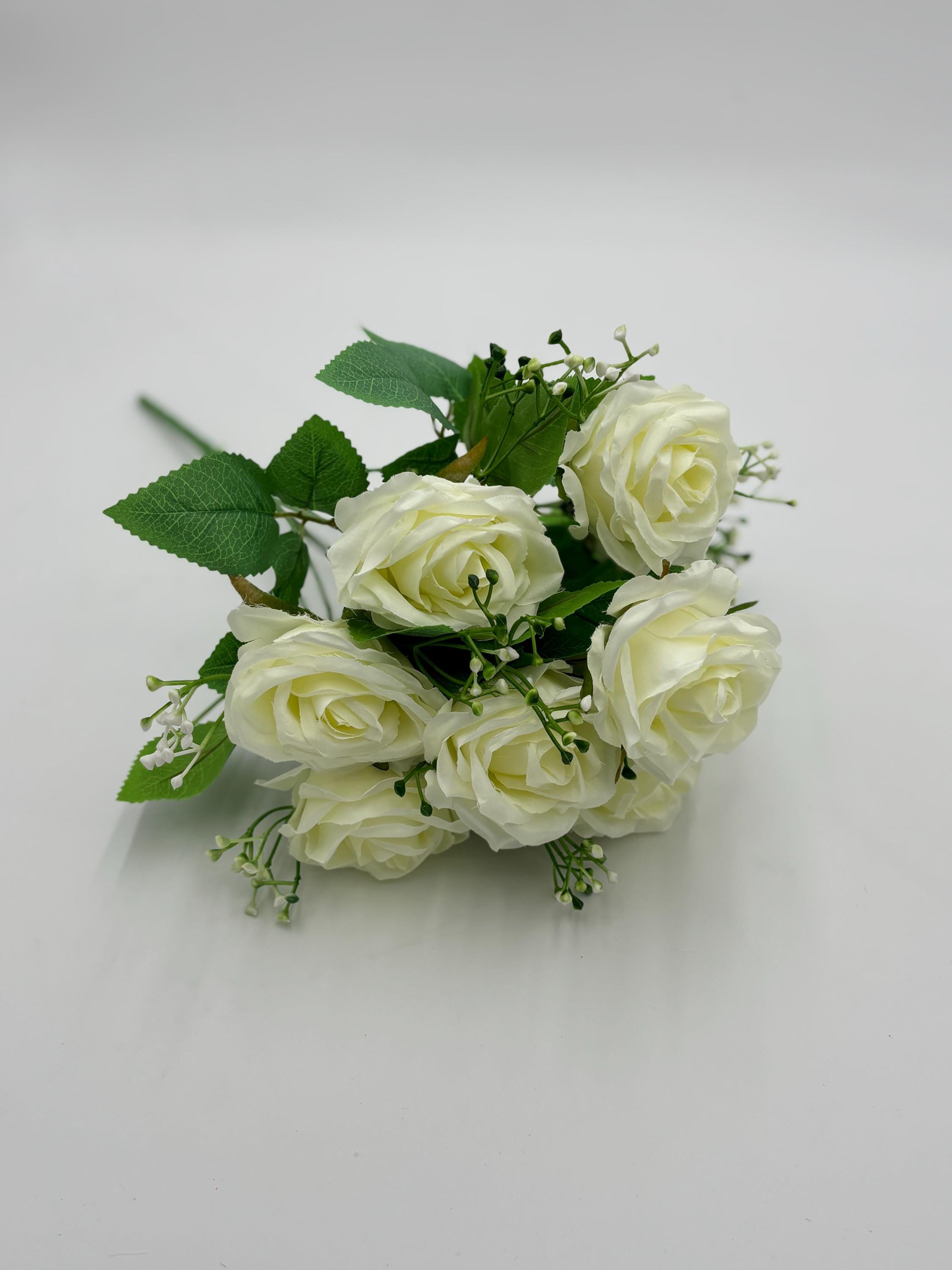 Create an elegant and romantic atmosphere with this artificial ivory rose bunch, featuring 9 beautifully crafted rose heads. Ideal for weddings, events, and professional décor styling, this faux rose arrangement is designed to deliver lasting visual impact without maintenance.